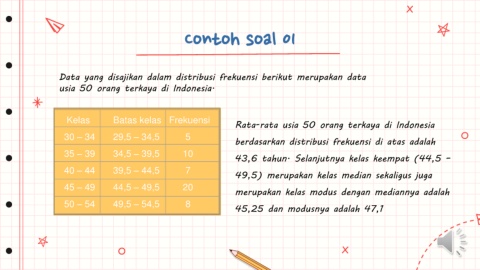 Kelas Batas kelas Frekuensi Rata-rata usia 50 orang terkaya di Indonesia