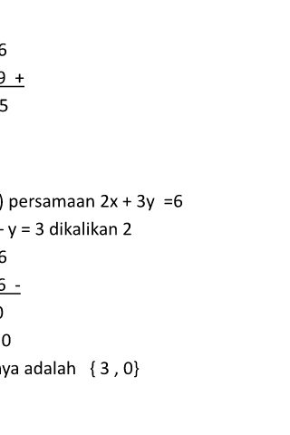 • Langka 2( eliminasi varibel x ) persamaan 2x + 3y =6