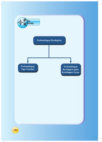 Peta onsep K Pe rb an di ng an B er ti ng ka t Perbandingan Bertingkat di an ng an rb Pe Perbandingan Pe rb an di ng an Perbandingan Tiga Variabel Bertingkat pada Tiga Variabel Bertingkat pada Kehidupan Nyata Kehidupan Nyata 102