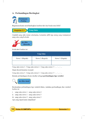 Bentuk perbandingan di atas disebut sebagai perbandingan tiga variabel.