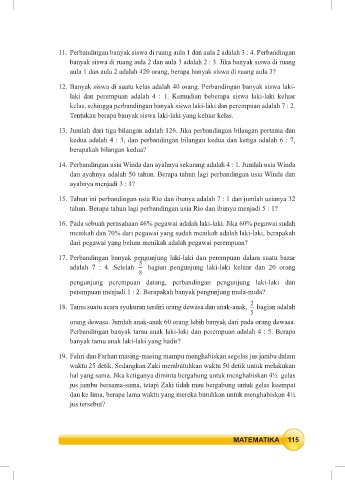 12. Banyak siswa di suatu kelas adalah 40 orang. Perbandingan banyak siswa laki-