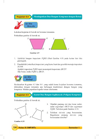 Kegiatan 4.4 Mendapatkan Dua Bangun Kongruen dengan Rotasi