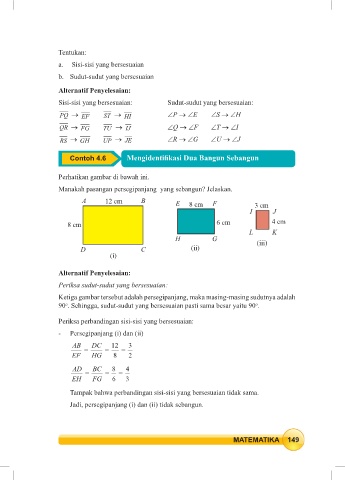Sisi-sisi yang bersesuaian: Sudut-sudut yang bersesuaian: