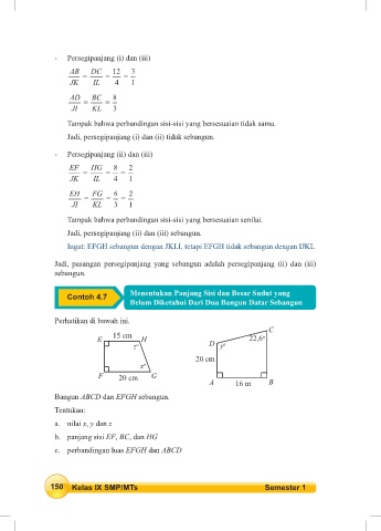 Ingat: EFGH sebangun dengan JKLI, tetapi EFGH tidak sebangun dengan IJKL