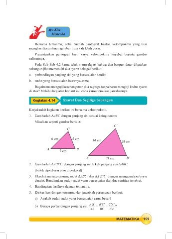 Kegiatan 4.14 Syarat Dua Segitiga Sebangun