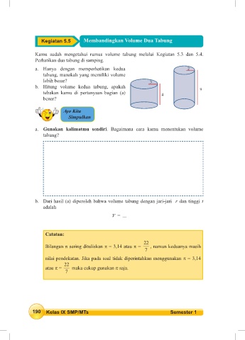 Kegiatan 5.5 Membandingkan Volume Dua Tabung