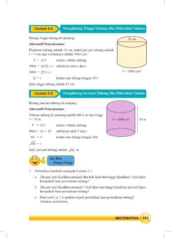 Contoh 5.4 Menghitung Tinggi Tabung Jika Diketahui Volume