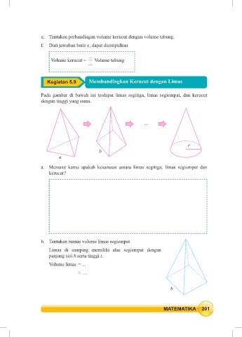 Kegiatan 5.9 Membandingkan Kerucut dengan Limas