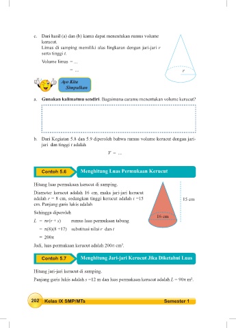 Contoh 5.7 Menghitung Jari-jari Kerucut Jika Diketahui Luas