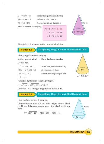 Contoh 5.8 Menghitung Tinggi Kerucut Jika Diketahui Luas