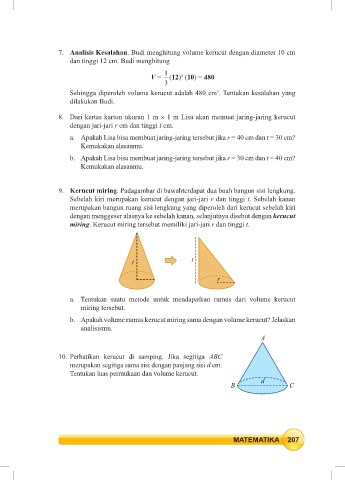 7. Analisis Kesalahan. Budi menghitung volume kerucut dengan diameter 10 cm