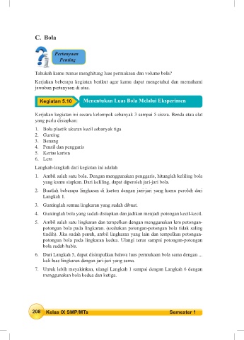 Kegiatan 5.10 Menentukan Luas Bola Melalui Eksperimen
