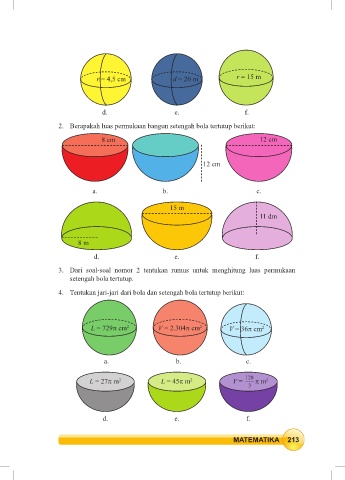 2. Berapakah luas permukaan bangun setengah bola tertutup berikut: