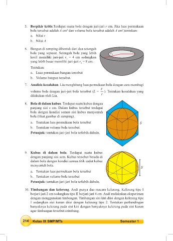 5. Berpikir kritis 7HUGDSDW VXDWX EROD GHQJDQ MDUL MDUL r cm. Jika luas permukaan