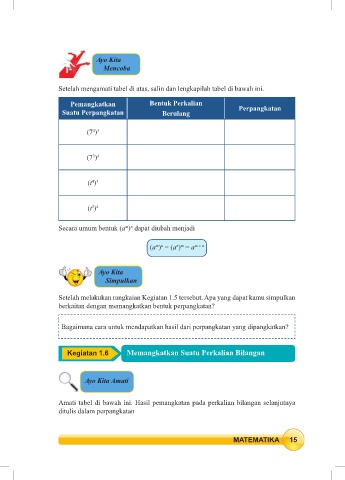 Kegiatan 1.6 Memangkatkan Suatu Perkalian Bilangan