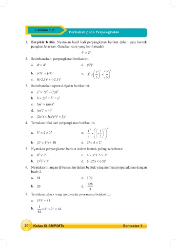 1. Berpikir Kritis. Nyatakan hasil kali perpangkatan berikut dalam satu bentuk
