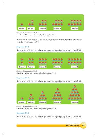 Amatilah dan catat banyak tutup botol yang diperlukan untuk membuat susunan ke-1,