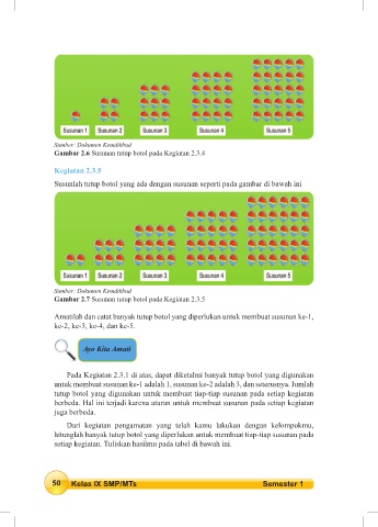 Amatilah dan catat banyak tutup botol yang diperlukan untuk membuat susunan ke-1,