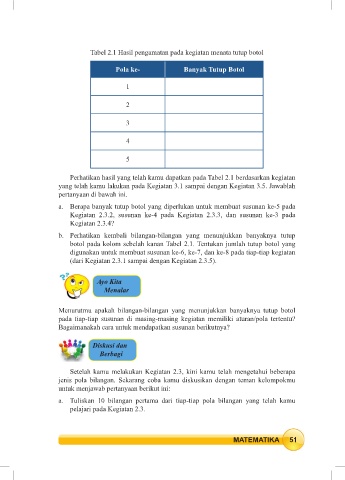 a. Berapa banyak tutup botol yang diperlukan untuk membuat susunan ke-5 pada
