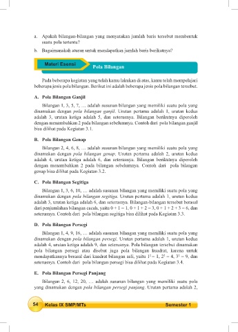 Bilangan 1, 4, 9, 16, … adalah susunan bilangan yang memiliki suatu pola yang