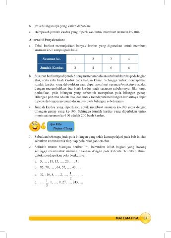 sebutkan aturan untuk tiap-tiap pola bilangan tersebut.