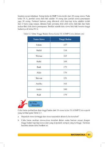 a. Siapakah siswa tertinggi dan siswa terpendek dalam kelas tersebut?