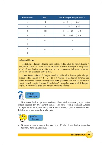 Susunan ke- Suku Pola Bilangan dengan Beda 3