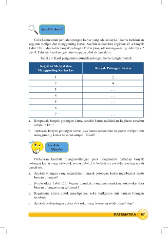 a. Apakah bilangan yang menyatakan banyak potongan kertas membentuk suatu