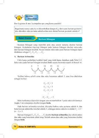 dari barisan bilangan tersebut. Secara umum suku-suku pada barisan bilangan dapat