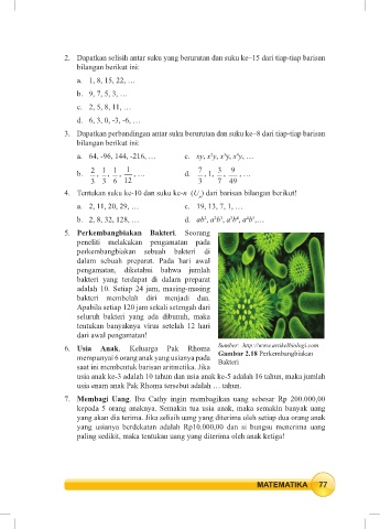 2. Dapatkan selisih antar suku yang berurutan dan suku ke–15 dari tiap-tiap barisan