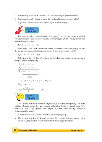 a. Berapakah dari suku pertama pada barisan bilangan genap?