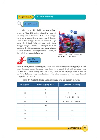 Minggu ke- Kelereng yang dibeli Jumlah Kelereng