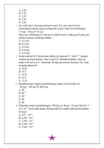 7. Gas A,B, dan C masing-masing 0,4 mol, 0,6 ,mol, dan 0,2 mol