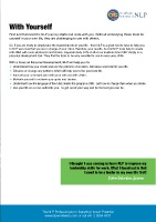 First and foremost the NLP journey starts and ends with you. Without embodying these tools for