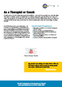 An NLP Professional is in a beneficial place – not As an NLP Coach or Therapist you will: