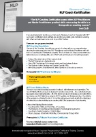 NLP Trainer & able certify your own NLP Training courses if you desire. y The Business of Coaching and Investigation Psychological Approaches