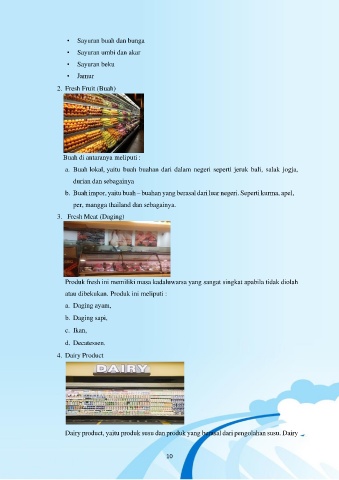 Dairy product, yaitu produk susu dan produk yang berasal dari pengolahan susu. Dairy