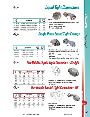 750-NMLT50 1/2” Non-Metallic Straight Connector 25 600 • For use with metallic and non metallic liquid tite conduit, Type B
