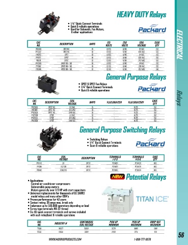 CAT. DESCRIPTION COIL AMPS FLA/LRA@125V FLA/LRA@250V Case Relays