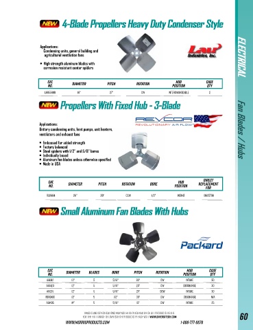 Unitary condensing units, heat pumps, unit heaters, Fan Blades / Hubs
