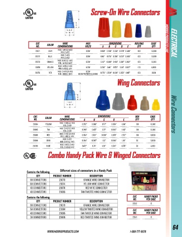 Cat. Color Wire Dimensions Box Case Wire Connectors