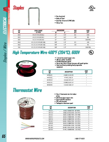 Staples / Wire High Temperature Wire 400°F (204°C), 600V 5,000/Pail
