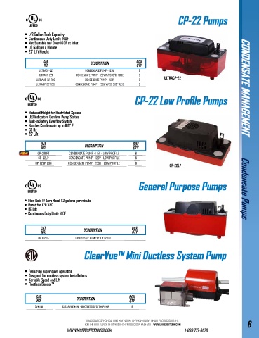 ULTRACP-22T-230 Condensate Pump – 230V w/20’ 3/8” Tube 6 CONDENSATE MANAGEMENT