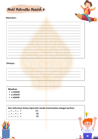 Dari informasi diatas diperoleh model matematika sebagai berikut :