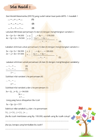 Dari Model Matematika (SPLTV) yang sudah kalian buat pada LKPD -1 masalah 1