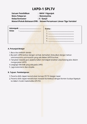 1. Peserta didik dapat menemukan konsep SPLTV dengan tepat
