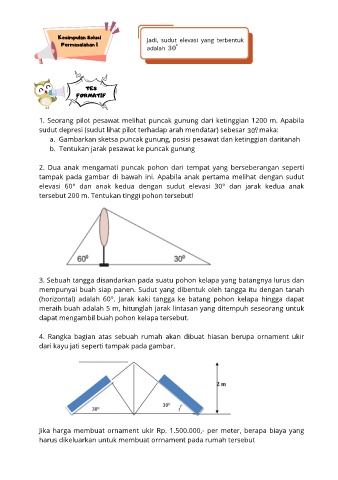 1. Seorang pilot pesawat melihat puncak gunung dari ketinggian 1200 m. Apabila