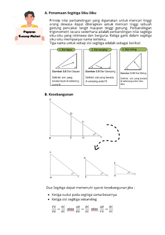 Dua Segitiga dapat memenuhi syarat kesebangunan jika :