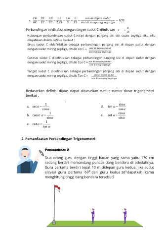 Tanget sudut C didefinisikan sebagai perbandingan panjang sisi di depan sudut dengan