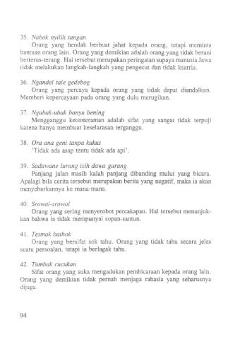 Page 102 - EBOOK_Peribahasa Jawa Sebagai Cerminan Watak Sifat dan Perilaku Manusia Jawa